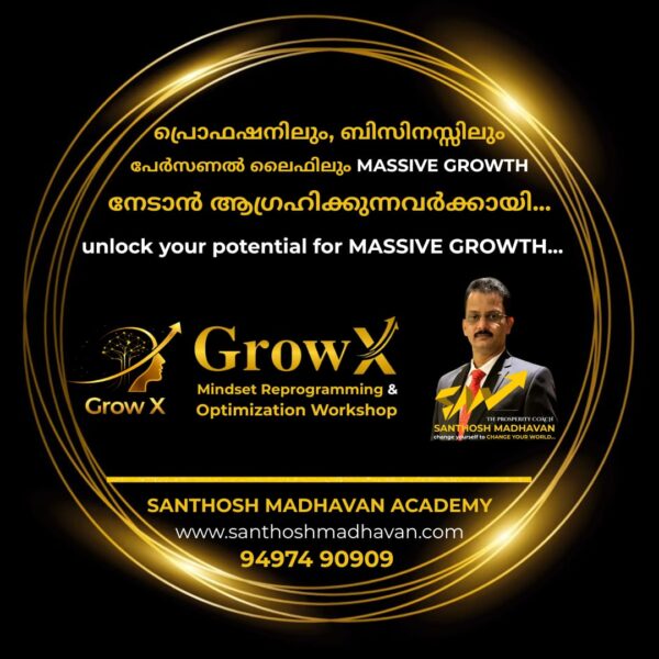 🔥 നിങ്ങൾക്ക് വേണ്ടിയുള്ളതാണ് Prosperity Coach സന്തോഷ് മാധവൻ നയിക്കുന്ന – Grow X – The Mindset Reprogramming & Optimization Workshop.